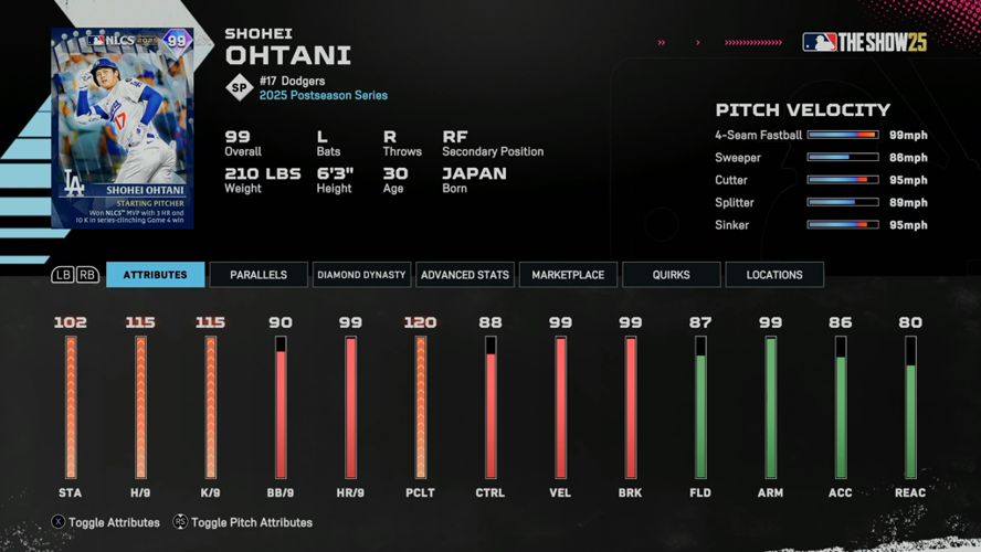Another notable card is Vladimir Guerrero Jr., who delivered an exceptional ALCS showing. His first-base card boasts maximum offensive stats against right-handed pitchers and formidable ratings against lefties. Players who have struggled with Judge’s large strike zone may find Guerrero’s card more user-friendly, and both Ohtani and Guerrero are expected to be staples in many lineups due to their superpowered ratings.