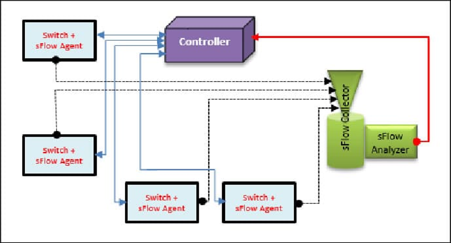 sFlow operates through a distributed monitoring system comprised of two primary components: