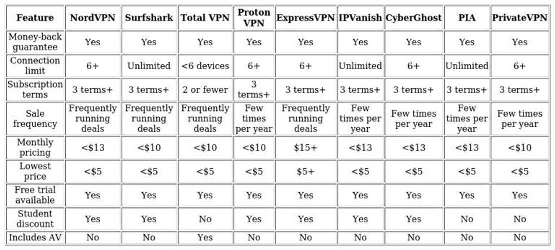 Our analysis identified Total VPN as the overall best value option, offering exceptional benefits including an integrated cross-platform antivirus solution and password management tool. The competitive pricing on their extended subscription plans significantly contributed to this ranking. For those seeking alternatives, Surfshark presents compelling value with academic discounts, substantial savings on long-term commitments, and unlimited simultaneous connections.