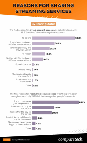 A striking 77% of its users admit to exchanging login credentials, making it the most shared service.