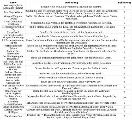 Um alle Inhalte des Updates 3.3 vollständig zu erfassen und die Orte „Celestial Castrum: Circadian Eye“ und „Floating Fortress of the Circadian Eye“ zu erkunden, müssen insgesamt 54 Erfolge erreicht werden.