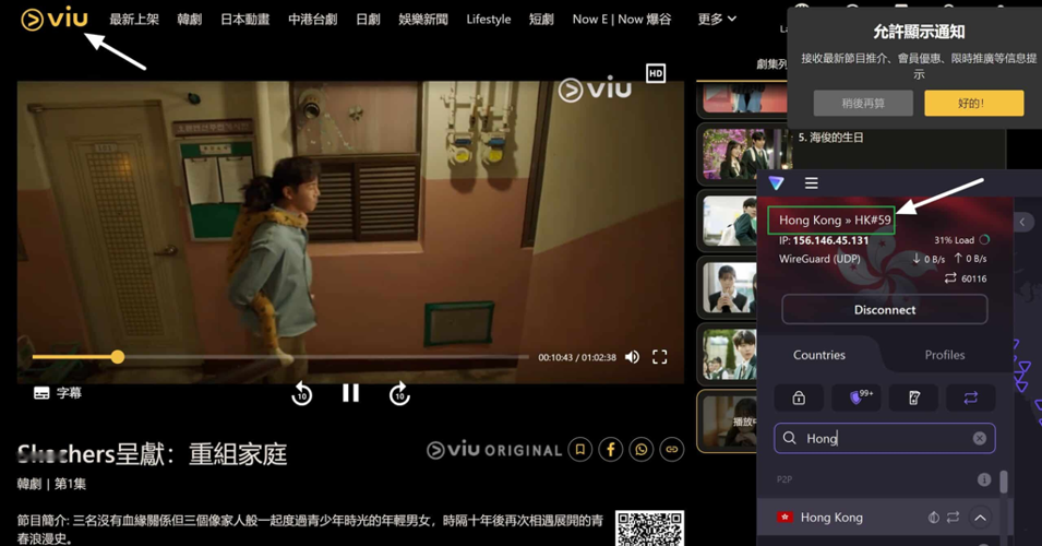 • Connect to a server located in an Asian country where Viu is available. This step assigns you an Asian IP address, unlocking Viu’s content library.