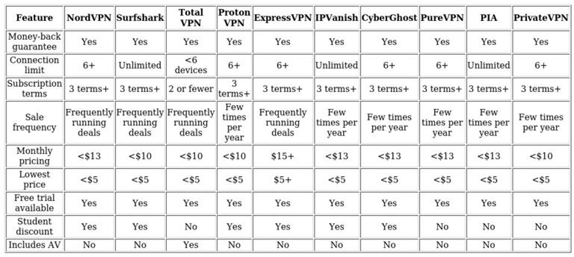 Price plays a big role for many readers. To judge value, we pit each service against competitors at similar price points, and check for student deals, discounts for longer-term plans, and occasional promotional offers. A refundable trial or a clear money-back guarantee is required for any service to make our list.\n